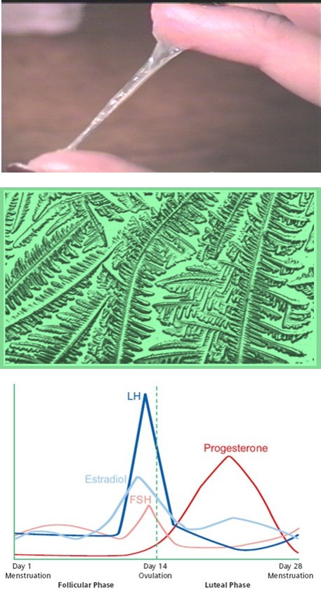 The hormone estrogen links saliva patterns to a woman’s fertility. As ovulation nears, estrogen increases and causes the body’s sodium levels to rise increasing the salinity of a woman’s saliva. Near ovulation the higher salt content causes the dried saliva to form crystallization patterns as seen under the microscope. Both saliva and cervical mucus have shown these patterns.